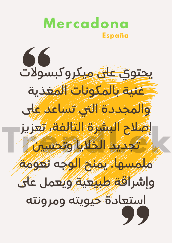 🔍 الوصف منتجات ذات صلة تنعيم الجلد الخشن وإزالة الخلايا الميتة Pure urea 40 د.م. إضافة إلى السلة كريم الجسم لتنعيم البشرة وحمايتها من الجفاف Olive 50 د.م. إضافة إلى السلة حليب تنظيف الوجه Leche leite 45 د.م. إضافة إلى السلة قناعين الوجه للتقشير من الطحالب السوداء Mascarilla peeling 40 د.م. إضافة إلى السلة